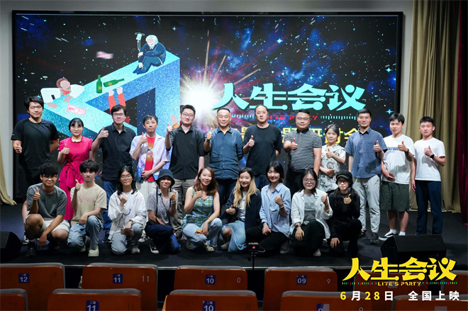 1905电影网讯 6月11日,由宋晓飞执导,肖央、娜扎、王迅领衔主演,刘琳特邀主演,杨皓宇、王琳、代乐乐友情出演,王太利特别出演的电影《人生会议》在天津举办电影专题研讨会。影片导演宋晓飞与南开大学文学院教授、博士生导师周志强,该院教授、视觉设计研究中心主任高迎进,副教授、青年电影评论家陈琰娇,天津工业大学艺术学院教授、中华器物艺术高等研究中心主任郑勇,该院教师张龙龙博士,以及南开大学文学院博士王子建、博士生柳在元(韩国剧作家),本科生王硕,天津工业大学人文学院耿盈章博士等一同进行了映后交流。从影片时空穿越设定、喜剧类型的呈现以及不同年龄的卫星(肖央 饰)抢夺人生主权面临人生选择题的现实意义等方面展开多维度探讨;对于影片中“自我博弈”的命题,现场学生也踊跃分享了代际价值观碰撞下的成长共鸣。